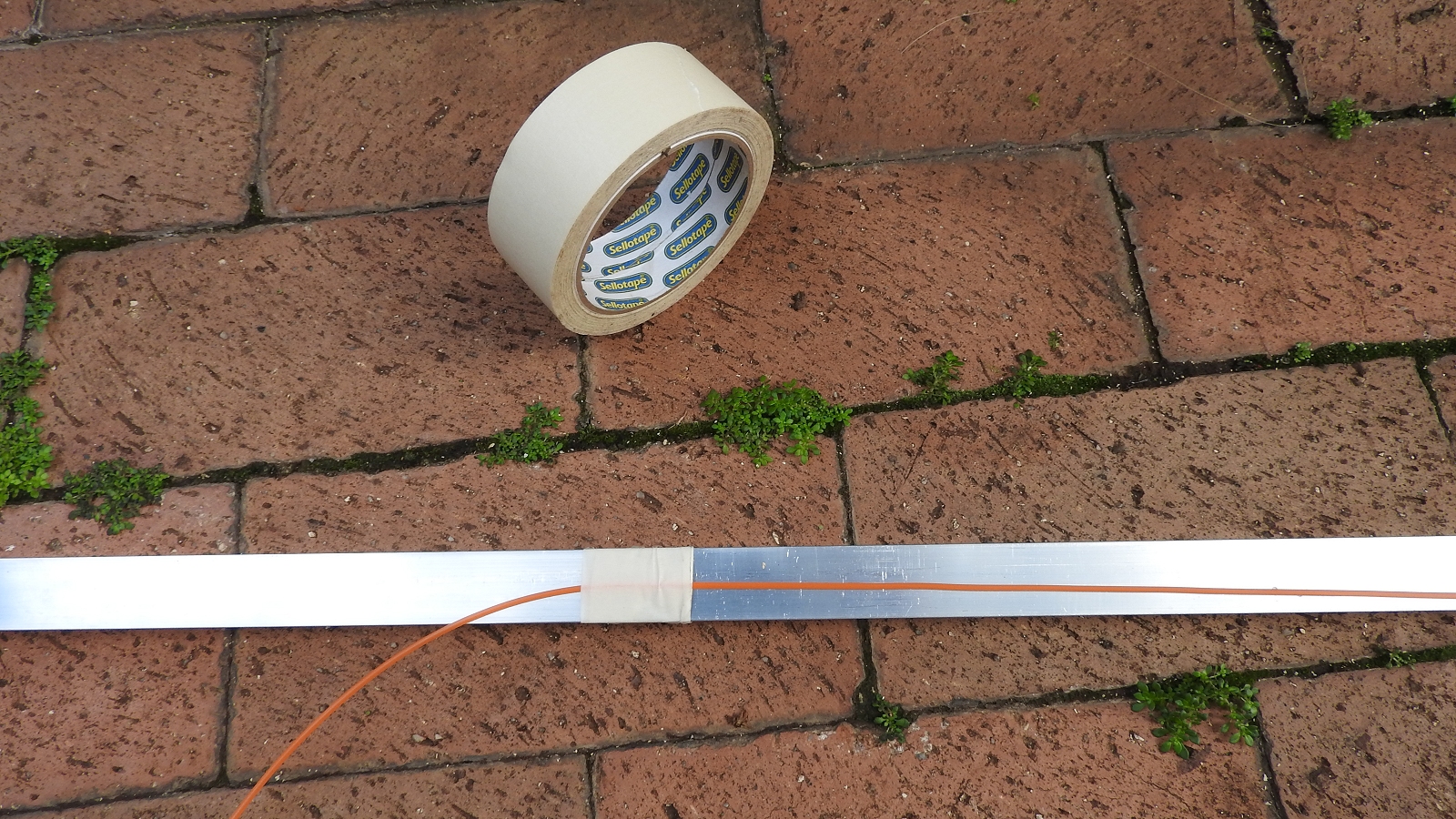 For this design I used standard PVC insulated electrical copper wire. With respect to RF, the PVC insulation causes the wire to appear longer than it really is, this is caused by a phenomenon called "velocity factor." This has been taken into account and the dimensions I use here have been decreased by 6 % (factor: 0.94) which is the velocity factor of standard PVC insulated electrical copper wire.