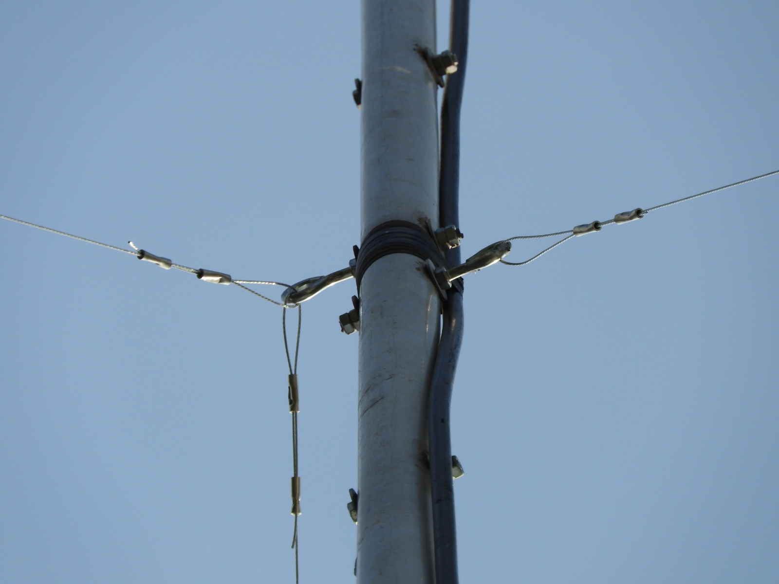 To adjust the VSWR shorten or length both open ends of the cable by the same amount, pulling them together again with the Dacron line. Use trial-and-error to obtain the lowest VSWR.