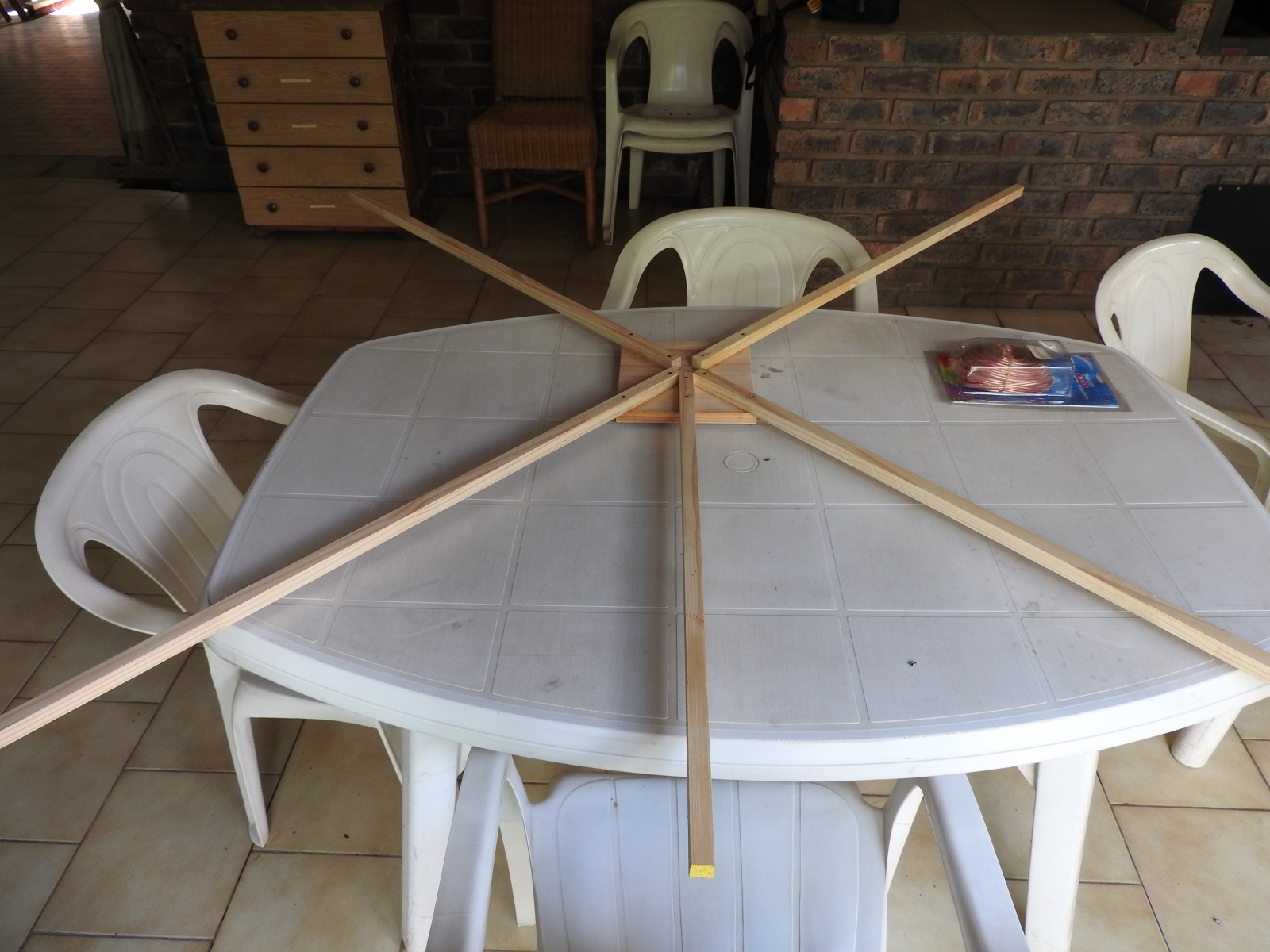 Corner slots to mount speaker cable: 0.922 m (from the centre out on each of the four spreaders)